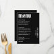 Menú boda moderno con un diseño sencillo y minimalista con tipografía atrevida en blanco sobre fondo negro. Los colores pueden cambiarse a cualquier color que elija en la herramienta de edición de diseño. La carta boda contemporánea es ideal para un boda con temática de gótico o halloween.