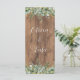 Present your reception menu beautifully with this botanical menu card featuring eucalyptus greenery, white florals, gold accents, and rustic wood texture.