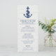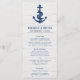 Un ancla azul marino sobre un fondo de madera blanquecina. Una cinta de la ancla dice "menú". Todo el texto se puede personalizar fácilmente. Perfecto para un boda de temática náutica, sobre todo si te gusta el estilo rústico o vintage.