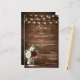 Luces rústicas de cuerda y tarro de albañil con borgoña, rojo, marsala, marrón, marfil, ramo floral de color rubor y hojas de eucalipto en un menú boda de fondo de madera. Comuníquese conmigo para obtener ayuda sobre la personalización o si necesita cualquier otro producto con este diseño.