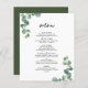 El rústico menú Boda botánico Eucalyptus Greenery es una pieza muy bien diseñada que complementa a la perfección los bodas rústicos, boscosos o de temática ajardinada. Con un suave entorno eucalipto y un diseño limpio y moderno, esta carta le da un toque de elegancia natural a su recepción. Sus tonos tierra y su diseño botánico crean un ambiente tranquilo y acogedor, ideal para las parejas que aprecian los detalles de inspiración natural. En el personalizable de Zazzle, puedes añadir fácilmente tu propia selección de platos, lo que lo convierte en un complemento práctico y elegante de la decoración boda que los clientes admiran.