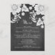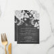 Rústico marco floral campestre en la tarjeta de menú Chalkboard. Carta de personalizable con encaje florido blanco sobre un fondo falso de pizarra. Personalizado añadiendo sus propios detalles. La carta rústica es perfecta para los eventos rústicos, bohemios, otoñales y vintage. Los elementos coincidentes están disponibles.