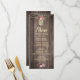 La carta es rústica con un tarro de albañil con rosas pintados de acuarela sobre un fondo de madera de granero. En el fondo de la carta, un pequeño ramo de rosa ocupa el centro con el mismo fondo de madera. Puede hacer clic en el botón personalizar para agregar su propio menú.
