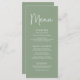 Acoger una ducha para bebés nunca ha sido fácil con el Modern Script Sage Oh Baby Simple Baby Shower Menu. Esta tarjeta de menú de moda, personalizable, es la adición perfecta para su celebración. Ya sea que su tema sea neutro, boho o clásico, esta carta del menú se mezclará perfectamente. Su estilo neutro desde el punto de vista del género le permite centrarse en la creación de un evento que refleje su visión única. Relájese con este encantador menú personalizado que le da un toque elevado a su ducha de bebé.