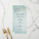 Este menú incluye un sello de pasaporte mexicano y puede ser editado para incluir la fecha de su boda. Hay espacio para 5 platos. En la parte trasera hay un avión y un camino en forma de corazón que rodea a los novios. Se pueden editar todos los detalles del menú. Los colores son el agua, el rosa, el blanco y el negro.