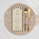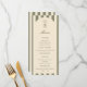 Birthday menu card featuring a hand-drawn coffee martini glass and coffee beans paired with elegant script and serif fonts in which your personalized information is written. The background is sage green stripes on a light background. Check out our store for more items from this collection.