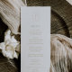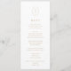 Esta carta clásica de boda geométrica, dorada y blanca, del Shylah Collection es perfecta para un boda clásico. El diseño de la tipografía de oro es sencillo y presenta un monograma oval geométrico con las iniciales de la pareja y un toque minimalista moderno. Este menú se puede utilizar para la recepción de bodas, la cena de ensayo o cualquier evento.