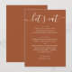 Present your wedding menu in a clean and elegant way with this modern menu card. The layout is designed to keep each course easy to read, from starters to dessert, while still feeling cohesive with your overall table setting. The vertical structure works well for multi-course dinners and helps guests quickly follow the flow of the meal. Printed in a rich sienna tone (also known as warm terracotta brown), this menu adds warmth and depth to your tablescape. It pairs naturally with neutral, earthy palettes and complements modern, minimalist, and refined wedding styles. A great fit for fall weddings, outdoor receptions, and warm toned celebrations, including desert and rustic modern venues.