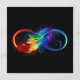 Símbolo de infinito dibujado artísticamente con una hermosa pluma arco iris sobre fondo blanco. Estilo tatuaje.