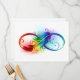Símbolo de infinito dibujado artísticamente con una hermosa pluma arco iris sobre fondo blanco. Estilo tatuaje.