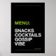 Alegrar tu cocina con humor! Póster “MENÚ: SNACKS, COCTELES, CHISMES Y VIBRAS” en tipografía moderna. Disponible en múltiples fondos de colores, perfecto como decoración para el hogar, regalos o arte de pared para la cocina.