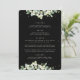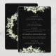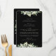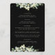 Un menú boda negro de cuatro platos, con un borde de nevadas pintadas a mano y eucaliptos en la parte delantera y una corona en la parte trasera. Todo el texto es completamente editable, y los puntos dispersos en la parte delantera y trasera se pueden borrar antes de pedir si lo prefiere. Por favor, vea esta colección en mi tienda para menús con arreglos florales alternativos, un número diferente de cursos y en diferentes tamaños, colores y formas. También hay elementos de coordinación disponibles.