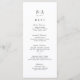 Sofisticadas tarjetas de menú minimalista en blanco y negro con monograma de pareja. La parte posterior del diseño presenta una floral vintage con un fondo editable en color. Sencillo y elegante. Ideal para bodas clásicos modernos y boda formal. Vea todas las piezas coincidentes de la colección.