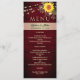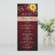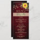 Elevar la recepción de bodas en otoño con este rústico menú boda de madera borgoña, mezclando elegancia moderna con encanto rústico. Diseñado sobre un papel de color burdeos con texturas de madera, cuenta con girasoles vibrantes, un delicado encaje floral dorado y un suave resplandor de luces de cuerda. Perfecto para celebraciones de granero, exterior o otoño, la carta le aporta calidez y romanticismo a su escapada de mesa. Personalice los detalles de su comida boda para crear una experiencia inolvidable.