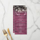 Con luces de cuerda de bonito y ilustraciones rústicos de flores dibujados a mano en garland, personaliza este elegante menú con la información especial del menú del día de bodas en un fondo de paneles de madera rojo borgoña. Diseñado por Thisisnotme©