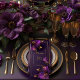 Elevate your reception tablescape with the Luminous Violets Wedding Menu, a refined statement piece designed for modern luxury celebrations. Featuring radiant violet florals, a rich twilight backdrop, and delicate gold framing, this elegant menu card brings sophistication and cohesion to your wedding décor.