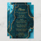 Create a striking presentation with this teal blue and gold agate marble menu, perfect for wedding receptions and versatile enough for stylish multi-purpose use. Deep ocean tones, organic stone-inspired textures, and shimmering gold accents come together to create a refined yet dramatic look that pairs beautifully with fall or winter celebrations. Designed to complement elegant, modern, and glamorous events, this agate-inspired menu can be customized for wedding dinners, cocktail hours, dessert tables, or upscale event and restaurant menus, offering timeless sophistication that extends well beyond the wedding day.