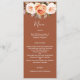 Este boho menú de la recepción de bodas en otoño de terracota es perfecto para un boda de estilo bohemio. Flores acuáticas en el esquema de color naranja quemado, terracota y rosa rubor con vegetación sabrosa sobre un fondo de terracota. Esta paleta de colores de tendencia es perfecta para un boda de finales de verano o otoño. Haga de este menú su propia opción incluyendo todos los detalles del menú de la recepción de bodas. Para una mayor personalización, haga clic en el enlace "personalizar adicional" y utilice nuestra herramienta de diseño para modificar esta plantilla