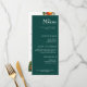 El menú Boda presenta una sofisticada selección de delicias culinarias en un entorno verde y exuberante que recuerda a la vegetación que se encuentra en un jardín aislado o en un tranquilo bosque de vidrio. El verde y profundo matiz de la sala crea un aura de opulencia y elegancia, lo que la convierte en el escenario de una experiencia gastronómica inolvidable. La elegante cabecera marca el tono para una celebración refinada, invitando a los huéspedes a disfrutar de una fiesta para los sentidos. Personalice este exquisito menú con sus nombres y fecha, añadiendo un toque a medida que lo transforma en un querido toque de su día especial. En medio de un tranquilo fondo blanco, un único pájaro de flores del paraíso adorna el espacio, con sus vivos tonos que capturan la esencia de la elegancia tropical. Con este telón de fondo, se invita a los huéspedes a profundizar en la historia de amor de la pareja, con espacio para un mensaje especial, una frase sentida o detalles íntimos que reflejan el viaje de amor y compromiso compartido por los recién casados. Este reverso del menú no sólo sirve como guía práctica para las delicias culinarias que esperan a los clientes, sino también como un conmovedor homenaje al vínculo único de la pareja, asegurándose de que cada aspecto de la celebración boda esté impregnado de calidez, alegría y significado personal.