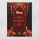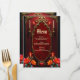The spirit of the wonderful vintage style. Elegant gold-decorated vintage frame against a deep red background. A subtle texture reminiscent of rose petals is visible inside the frame. Tall, slender candles in gold candlesticks flank the frame, while additional smaller candles are placed higher up. Bright flowers in shades of red, orange, and teal add a mystical splash of color.