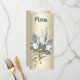 Esta tarjeta de menú está diseñada con un ramo de tulipanes blancos con zonas verdes y doradas sobre un fondo dorado. El texto frontal incluye: Menú. El texto inverso incluye: Menú, así como las selecciones de aperitivo, Entre y postre. Para personalizar, simplemente inserte sus selecciones de aperitivo, Entre y postre utilizando nuestra plantilla sencilla, reemplazando el texto de ejemplo. Asegúrese de ver las piezas adicionales que coinciden con esta colección de tulipanes blancos con Boda dorado.