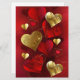 Composición vertical de rojo y oro, con texturas de valentinas hechas de Relieve metalizado y brocado sobre fondo rojo. Decoración día de San Valentín.
