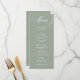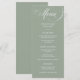 Estas elegantes cartas de boda verde sabio presentan un estilo clásico de antaño con una caligrafía romántica en blanco. Para la cena, puedes elegir entre entrantes o aperitivos, primer plato, plato o entrante, y postres. Decore el tono de su sofisticada y lujosa recepción de bodas o cena de ensayo inspirada en Italia, o ducha de novia o ofertas de comida en pareja con este elegante diseño minimalista.