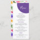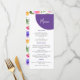 Elementos: coronas florales tropicales que rodean sus nombres y cola. Los nombres están en un guión caprichoso, mientras que los detalles están en un tipo de letra sans serif moderno. Colores: púrpura, rosa, amarillo, verde, orquídea, ciruela, magenta, fuschia, limón, Temas: luminoso, tropical, playa, destino, romántico, bohemio, alegre, moderno, casual. Colección: Vibrante colección de productos de Boda Casual Magenta Violet Amarillo: Menú