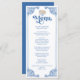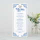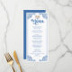 Un elegante menú para la cena de bodas con obras de arte chinoiserie a mano enmarcadas en detalles antiguos ornamentales, aportando un toque de cosecha a su ambiente.