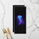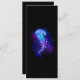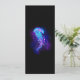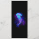 Gran medusa azul, de dibujo artístico, brillante y brillante, con largos tentáculos sobre fondo negro con bioluminiscencia violeta. Luminosas medusas.