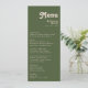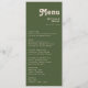 Las simples vigas retro | el menú de la cena boda verde oliva es perfecto para su boda de tonalidades de tierra antiguas. El diseño presenta una minimalista fuente hippie rústica tipo boho. La paleta de colores neutros del desierto del suroeste y las letras bohemias de mediados de siglo se combinan para un diseño perfecto y minimalista moderno de destino occidental. No dudes en cambiar el color y añadir tu propia obra de arte, gráficos o fotos. Si tiene alguna pregunta sobre el diseño de este producto, por favor, no dude en ponerse en contacto con nosotros.