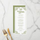 Elevar las mesas de la recepción con esta carta de menú de la cena de inspiración vintage. Con un romántico tono verde oliva y un marco antiguo de diseño intrincado, le da un toque de fantasía y refinamiento a su boda.