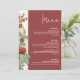 Menú Vintage Red Rose Wedding Reception Dinner Card