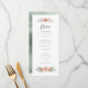 Add an eye-catching menu to your table decor featuring a unique decorative font that sets off a watercolor bouquet in soft pastels from blush pink through pale coral. The reverse has a modern, watercolor background in coordinating sage green tones along with your initials and wedding date. These wedding menus are perfect for garden weddings. Search ID654 to see the complete matching wedding set.