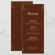 Bring cohesive western charm to your reception tables with this rustic wedding menu, featuring a deep dark copper–terracotta background and a minimal faux tooled floral motif inspired by vintage saddlework. The rich, earthy hue pairs beautifully with country, ranch, and barn wedding décor, while the subtle tooled accents add just the right touch of western elegance without overwhelming the design.