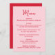 Menú Whimsical Pink and Red Heart Wedding