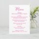 Share your reception menu in style with this whimsical wedding menu card designed to coordinate with playful, modern wedding stationery. The front of the menu features “Menu” displayed in a handwritten pink script with your wedding menu details shown below on a white background, creating a bright and love-filled look for place settings or reception tables. The back of the wedding menu card features a hand-drawn white heart surrounding the couple’s names and wedding date for a sweet and personal touch. Ideal for Valentine’s weddings, romantic celebrations, and couples who love fun, modern stationery, this customizable wedding reception menu adds charm while helping guests easily view the menu at your reception.