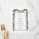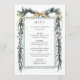 This wedding menu features a watercolor winter greenery garland adorned with pine branches, holly berries, botanical foliage, gold ribbon bows, and simple calligraphy. For more advanced customization of this design, please click the BLUE DESIGN TOOL BUTTON above! Matching items are also available.