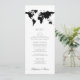 Plantilla de la tarjeta de menú de temas de viajes de mapas mundiales con colores y fuentes editables para que pueda coincidir con la ubicación de la boda o los colores del tema de destino. El color de fondo de la parte delantera y trasera, así como las fuentes, se pueden cambiar para que coincidan con el esquema de color boda. La parte trasera tiene espacio para un agradable mensaje de agradecimiento a sus invitados o información de taxi para ayudar a todos a llegar a casa con seguridad. Este diseño está disponible en otras plantillas de menú que tienen una variedad de tipos de papel, formas y acabados. Ofrecemos nuestros menús en múltiples plantillas de Zazzle para acomodar una gama de presupuestos. Visite la tienda de diseñadores de Destinos de Uva de Papel para encontrarlos rápidamente.