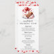Menú y programa de baby shower del Día de San Valentín con dulce osito en nubes con globos en forma de corazón y fondo de corazones. Simplemente agregue los detalles de su evento al frente y atrás de este adorable menú y programa de baby shower del dulce corazón.