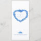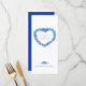 Arte floral moderno con tinta y acuarela en corazón en azul y blanco para menú de cena de boda o tarjeta de menú para eventos especiales. Edite este menú de 4 platos con sus propias palabras. Diseño de menú simple y moderno en azul y blanco. Ideal para una boda o evento con tema de amor azul o nomeolvides. © Flores originales de nomeolvides botánicas en un corazón dibujado a mano con tinta y arte y diseño de lavado de acuarela por Sarah Trett exclusivamente para www.mylittleedenweddings.com en Zazzle.