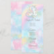 Menús de baby shower de unicornio con adorable unicornio en un hermoso fondo de nube de arcoíris pastel. Estos menús de unicornio se personalizan fácilmente con los detalles de su evento.