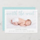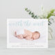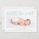 Bienvenido tu milagro con este anuncio de nacimiento de fotos. Presentando una foto con el mensaje "Vale la pena esperar" en azul, con el nombre del bebé y las estadísticas en gris. También permite una foto en la parte posterior.