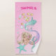 Un bonito conjunto de toallas de nombre personal con Sirenas y criaturas submarinas. Cambia el nombre de tu toalla de baño personal.
