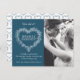 Mistletoe línea de arte botánico corona el corazón dibujando cartas de Navidades casados en azul y blanco con tu propia foto a un lado. Personalice con su propio mensaje la invitación a un fiesta o a un evento posterior al boda, nombres y fotos. Ideal para enviar algo de amor como mistletoe es un símbolo de amor y tiene asociaciones con vitalidad y buena salud. Dibujo original de la línea y diseño de Sarah Trett para www.mylittleedenweddings.com solamente en Zazzle.