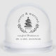 Holiday snow globe home decor and gift for the newlyweds featuring modern rustic Christmas tree design with personalized photo, name, and year.