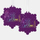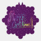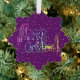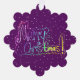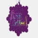 Feliz tarjeta de ornamento púrpura. Decoración artística de tarjetas de vacaciones moradas. Feliz texto navideño con letras moradas creativas forma copo de nieve adorno decoración de la tarjeta hogar. Escrito a mano Feliz Navidad brillante tarjeta de ornamento.