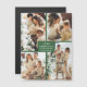 Your last name and the greeting Merry Christmas and Happy New Year in chic lettering on green with your favorite 4 photo collage on these 4.25" x 5.6" magnetic holiday greeting cards. *5" x 7" size done for you in our collection. Please use the correct size template so your photos will print correctly.
