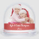 This is a fun and festive snow globe that is easy to customize with your own photos, name and date. One side of the snow globe is accented with your special photo and Merry Christmas; while the other side is decorated with the same photo or different photo, and names and date, (or your own special message if preferred). This makes a wonderful gift for the holidays, or the start of a family tradition. If help is needed customizing this item, just contact us at prettyfancyinvites@gmail.com.