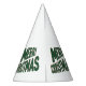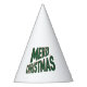 Estos gorras fiestas muestran las palabras "Feliz Navidad" en una letra impresa en negrita más letras verdes contorno rojo con letras de diferentes tamaños en el fondo en este tema y estilo de Navidad. Todos los gorras de papel tienen una cuerda elástica adjunta impresa en colores vivos completos hechos en Estados Unidos tiene un mínimo de 12 pedidos.